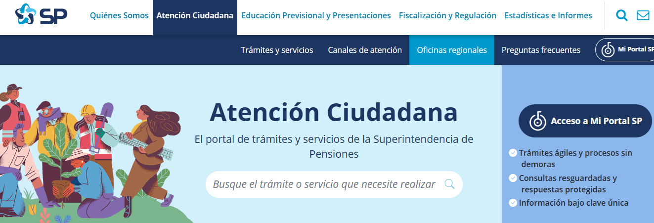 4. Atención ciudadana: en la SP o Superintendencia de pensiones, o haciendo clic aquí. necesitarás clave única.